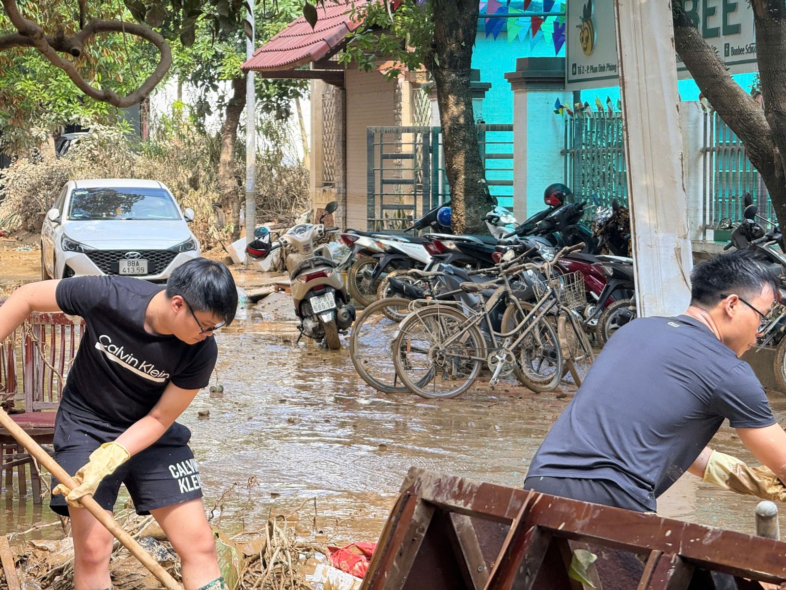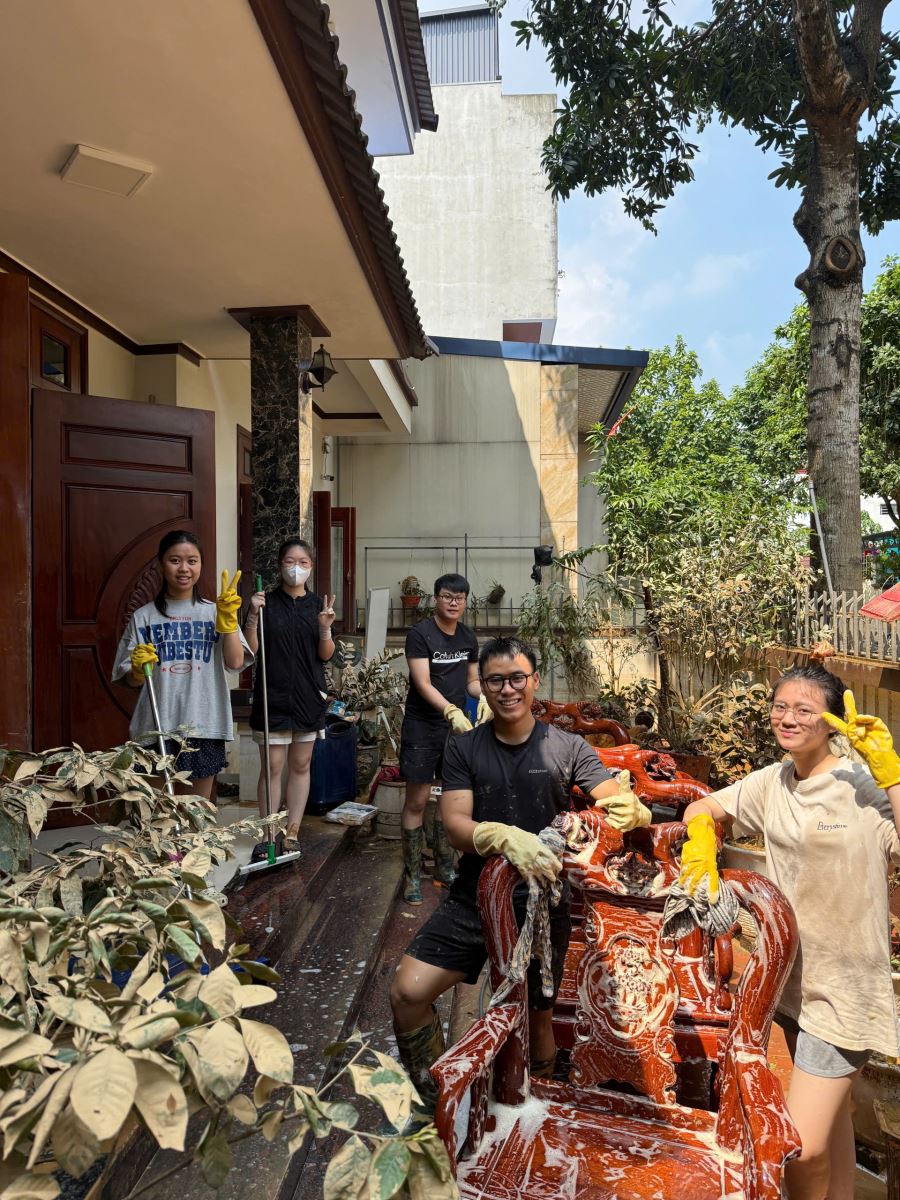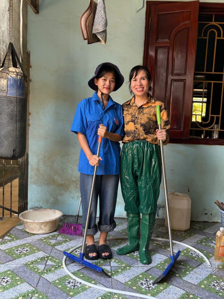 Ảnh. Các bạn sinh viên hỗ trợ các Thầy/Cô dọn dẹp nhà sau lũ